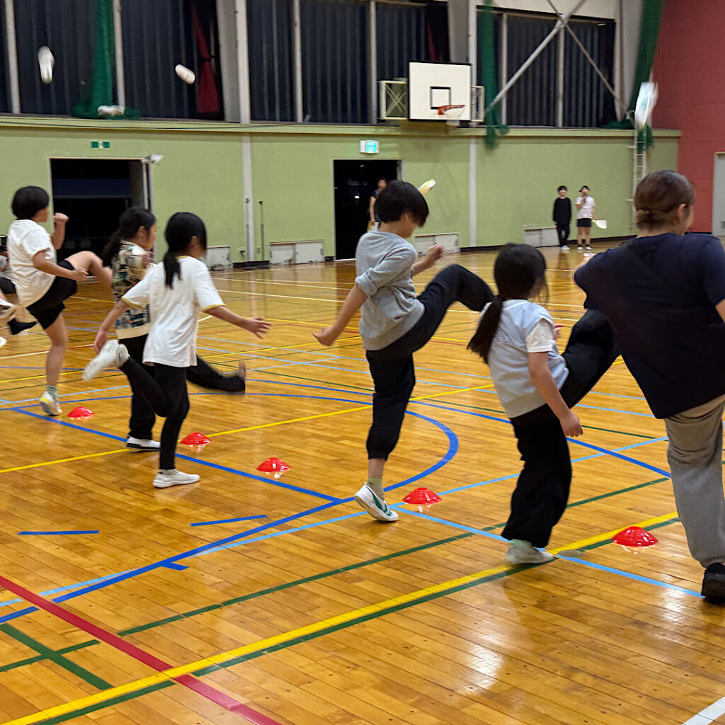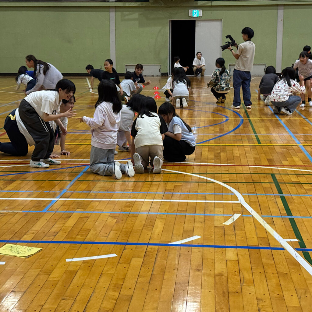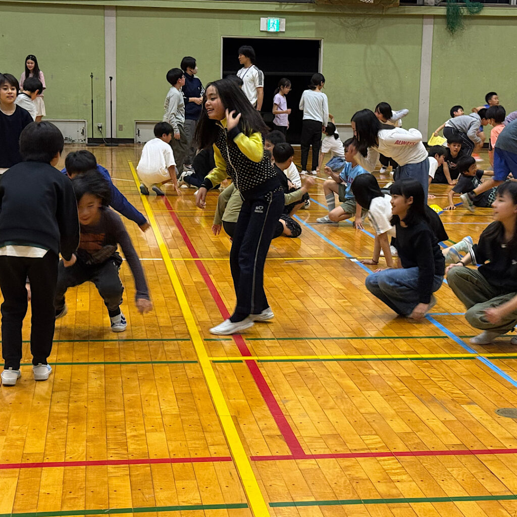最後の種目は王様の命令という、以前児童集会で船長さんの命令というゲームを行ったアレンジ版でした。グループで命令に従ってぴょんぴょん跳ねたり回ったりしていました。