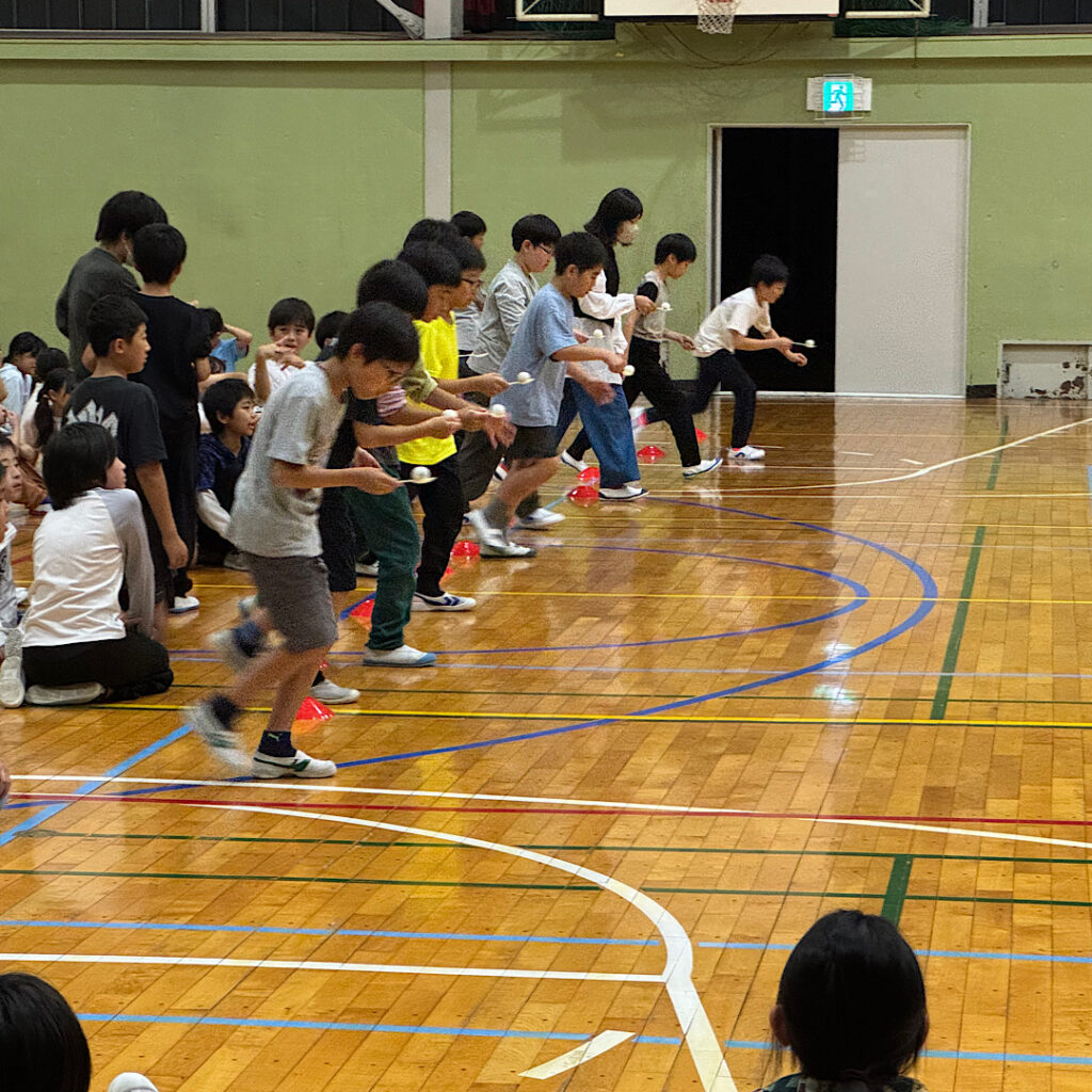 最後の種目は働きアリ競争という、スプーンでピンポン玉を運ぶリレーでした。