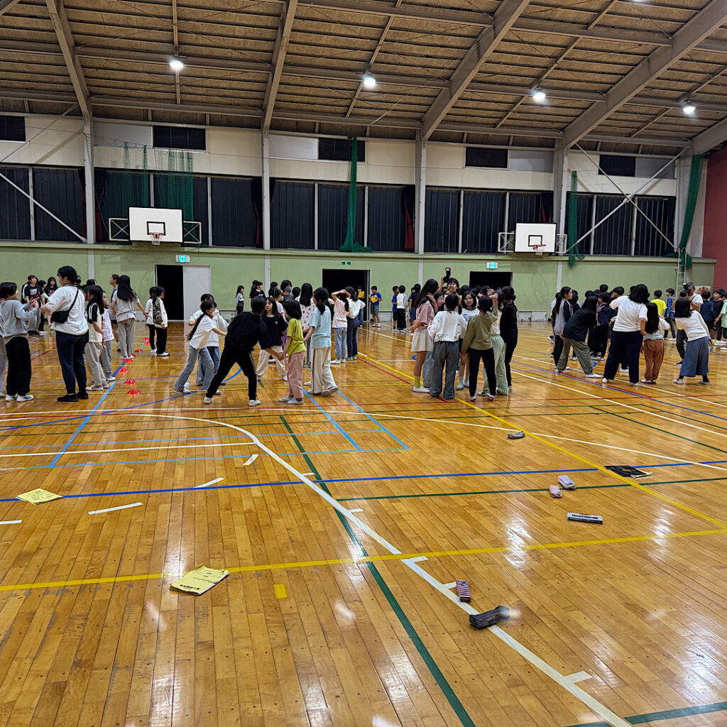 二種目目はできるだけ遠くへ飛ばせ明日天気になーれ!でした。上履きを遠くに飛ばすというレトロな競技でした。子供の頃ブランコからこれをひたすらやってきた世代としては自信満々で教員チームで参加したのですが、残念ながら惨敗でした。
