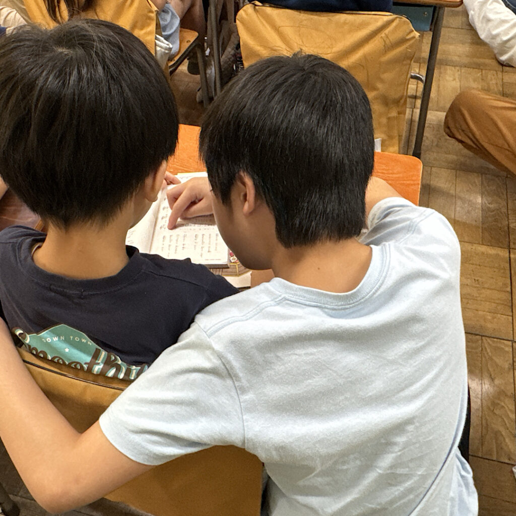 10月1日(金)の4校時の1年生の教室には、6年生がやってきて運動会の歌を教えてくれていました。よつば体育発表会に向けて、初めて聴くこの曲を6年生がピタリと横に付いて教えてくれるので、1年生はとってもわかりやすく、幸せです。6年生の美しい歌声を聴いて、1年生の歌声はどんどん美しく変わっていきました。6年生にとっても、こういう経験は貴重だなと思いました。最後は1年生と6年生が握手をしたりハグをしたりして別れを惜しんでいました。こういう交流活動を少しずつ増やしていきたいと思っています。