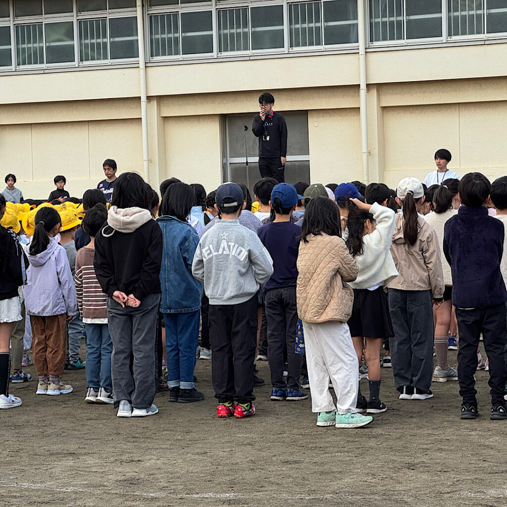 10月24日(金)の朝、全校児童が校庭に集まり、よつば体育発表会の第1回目の全校練習が行われました。若干肌寒い中でしたが、整列から体操の隊形まで練習しました。先頭の子がしっかりと場所を覚えてくれれば、うまくいくと思います。担当の先生からも、初めての練習にしてはとても上手だと褒められていました。また、代表委員会の児童から今年度スローガンの発表もありました。朝からシャキッと頑張る子どもたちは素敵です!
