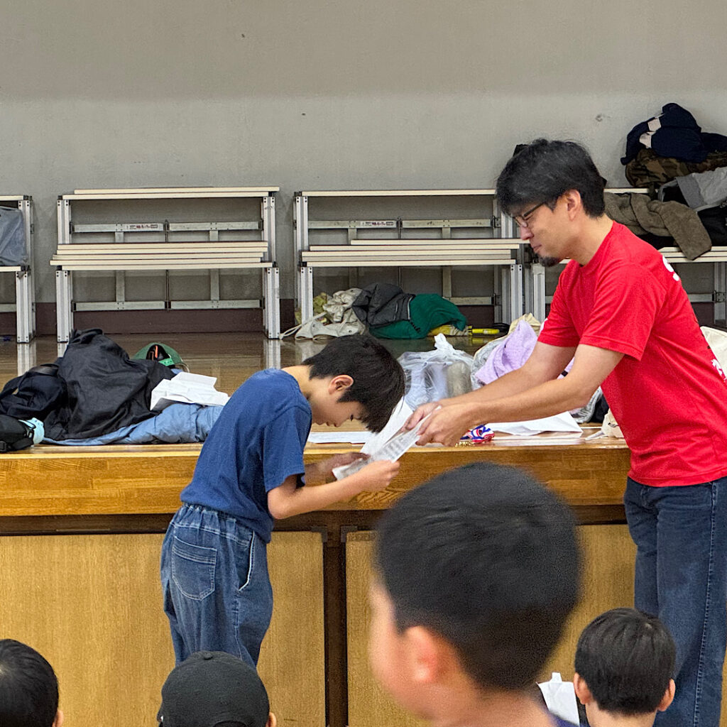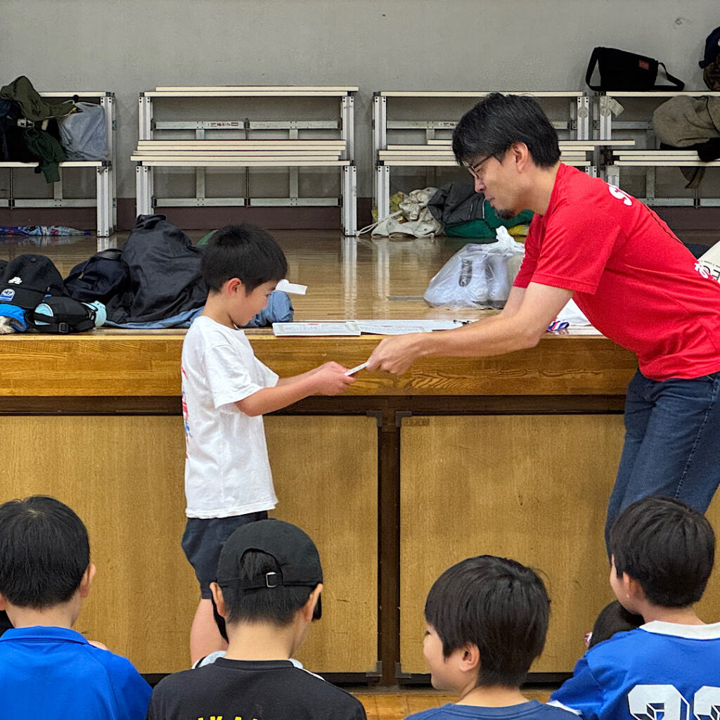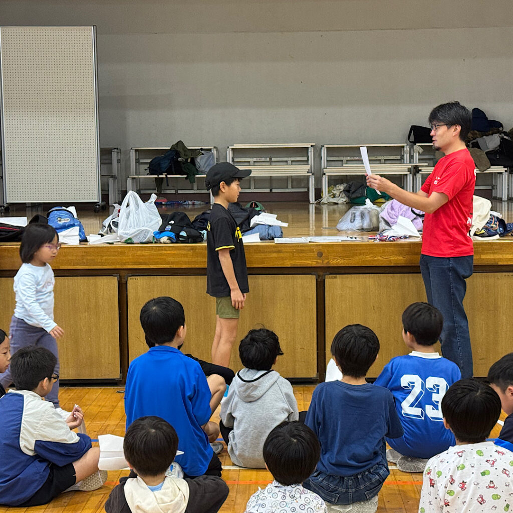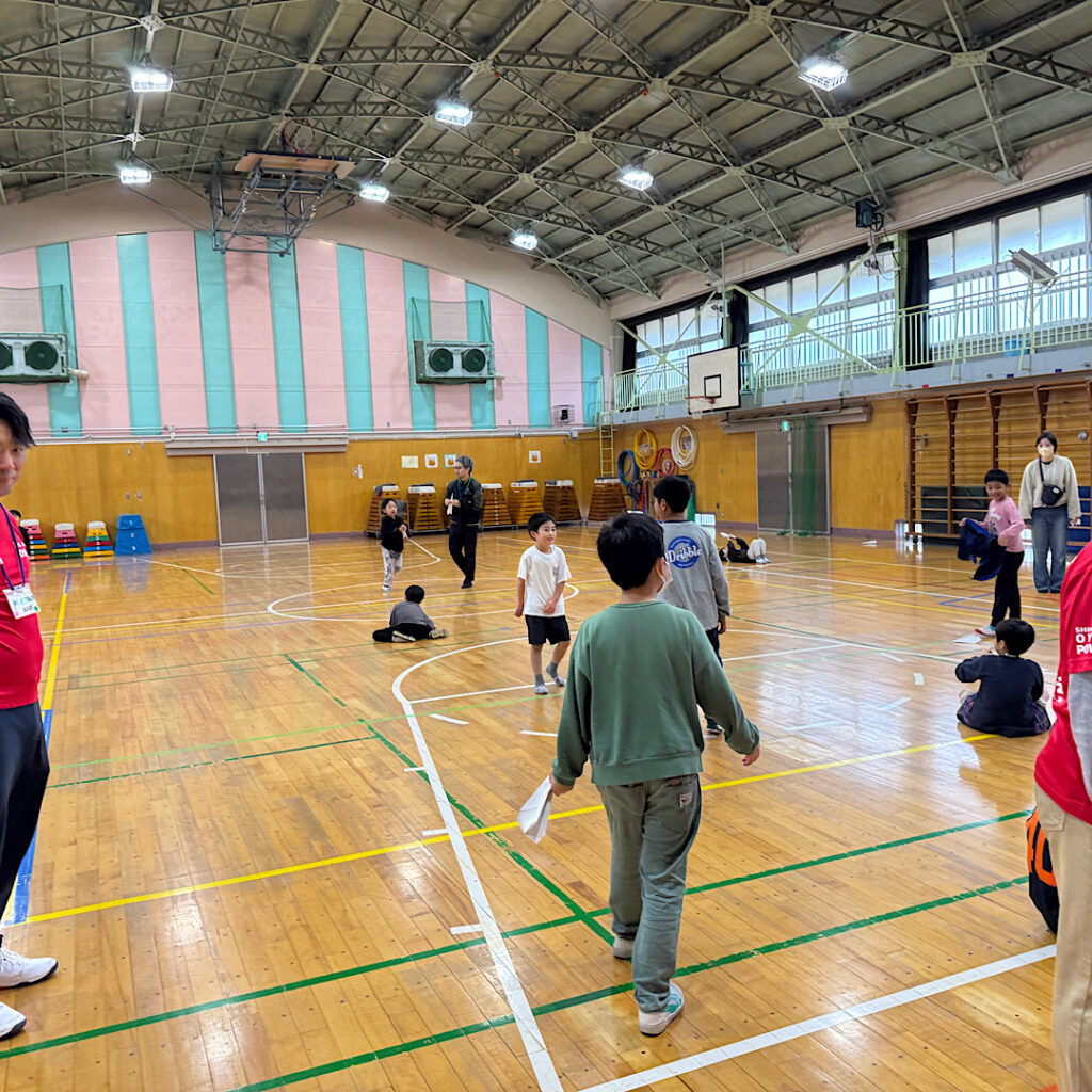 10時25日(土)四宮小学校の体育館ではおやじの会の皆さん主催のサタさたが開催されていました。今回は紙飛行機大会でした。体育館の端から飛ばして、どこまで飛ぶか距離を競うものでした。おやじの会の会長さんに聞くと、区内のおやじの会で記録を共有しているそうで、最高記録は23メートルとのことで、この日の四宮小の第一位の16メートルよりも飛んでいてビックリでした。上位3人の表彰と参加者みんなに記録証を出してくださっていて、子どもたちは大喜びでした。こういうイベントは楽しいですね♪