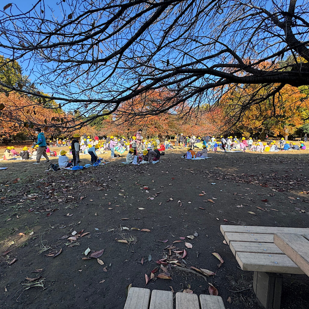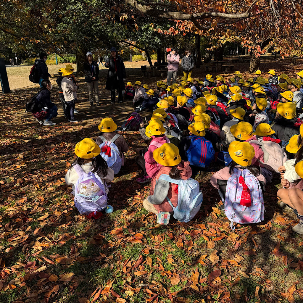お弁当を食べ終わったら今度は袋を取り出して、どんぐり拾いが始まりました。拾ったどんぐりは、お家で茹でていただくかもしれません…。