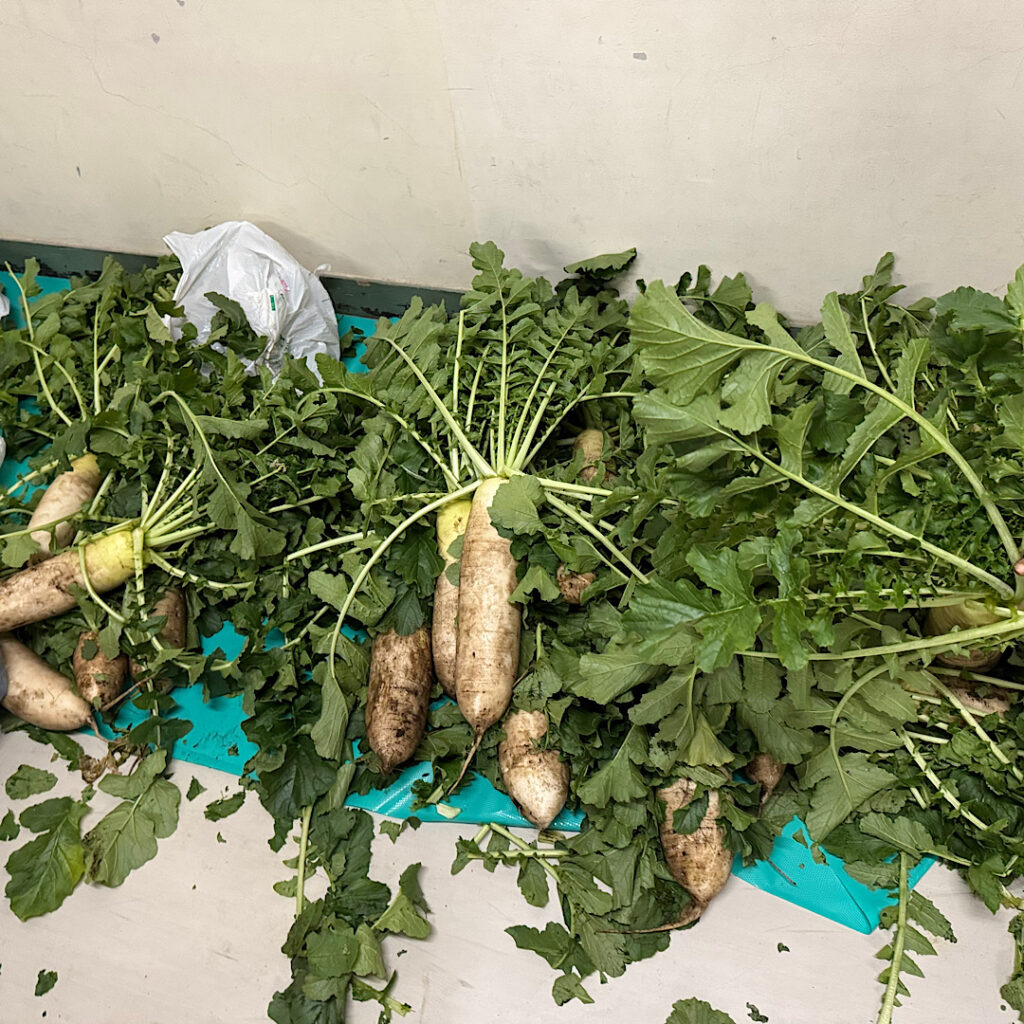 11月25日(火)の2.3校時、2年生は近所の上井草農園で大根抜きの体験をさせていただきました。これはJAの皆様のご協力を得て、種付けや間引きを体験して、いよいよ収穫という流れのようでした。戻ってきた子どもたちは大喜びで、一本はお土産にもう一本は給食用にしていました。あんな大きな大根を抜く経験はなかなかできないことなので、こんな素敵な体験をさせてくださる関係者の皆様に感謝の気持ちでいっぱいです。