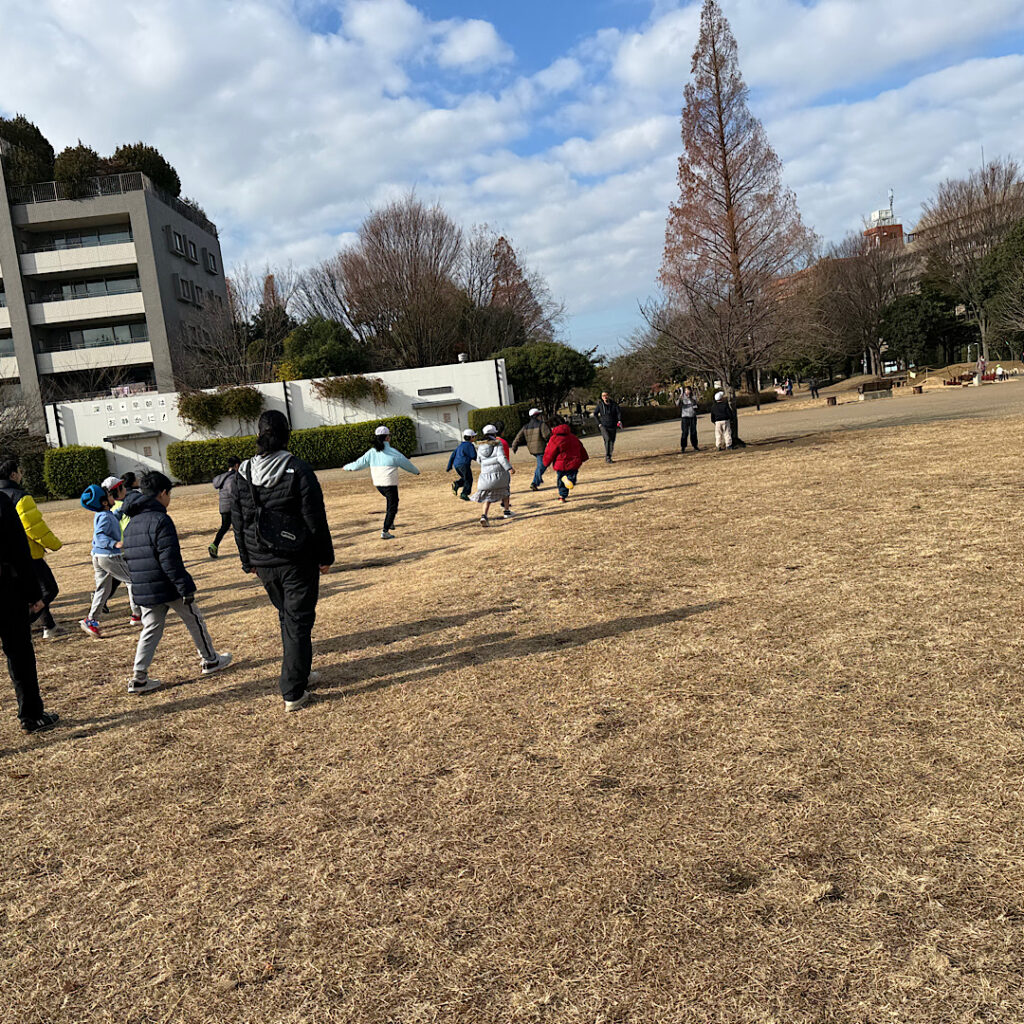 しゃうかいしあい11月19日(金)の2.3校時にクローバー学級のみんなは、近くのはらっぱ公園まで歩いて行き、桃三小うめ組のお友達と交流スポーツ大会に参加しました。最初にお互い自己紹介をしました。好きなものを紹介し合い、和みました。次に鬼ごっこ、だるまさんが転んだをして、最後に記念写真を撮ってお別れをしました。