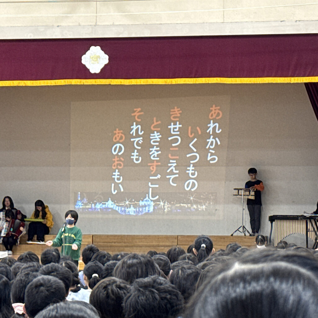2月20日(金)の朝、全校児童が体育館に集まり、音楽朝会が行われました。この日は6年生を送る会の練習も兼ねているので「たいせつなもの」でした。音楽の先生から、曲の山場、心の伝え方、ハーモニーという歌い方のポイントを教えていただきました。その後の子どもたちの歌声は驚くほど素敵になりました。この曲は4.5年生が難しいパートを歌っています。本当に素晴らしい子どもたちの歌声に朝から心が洗われました。最後に担当の先生から「どんな思いを6年生に届けますか?」との言葉がありました。6年生を送る会が今から楽しみです。