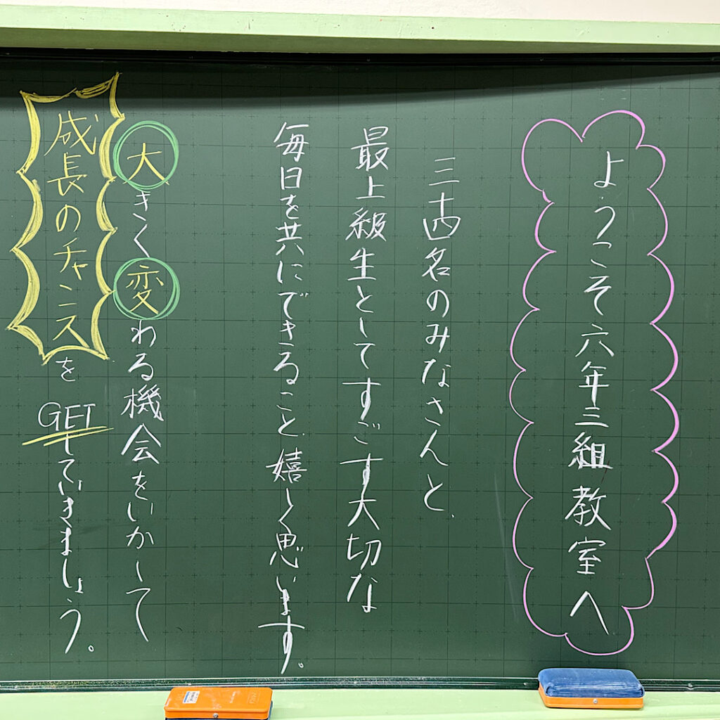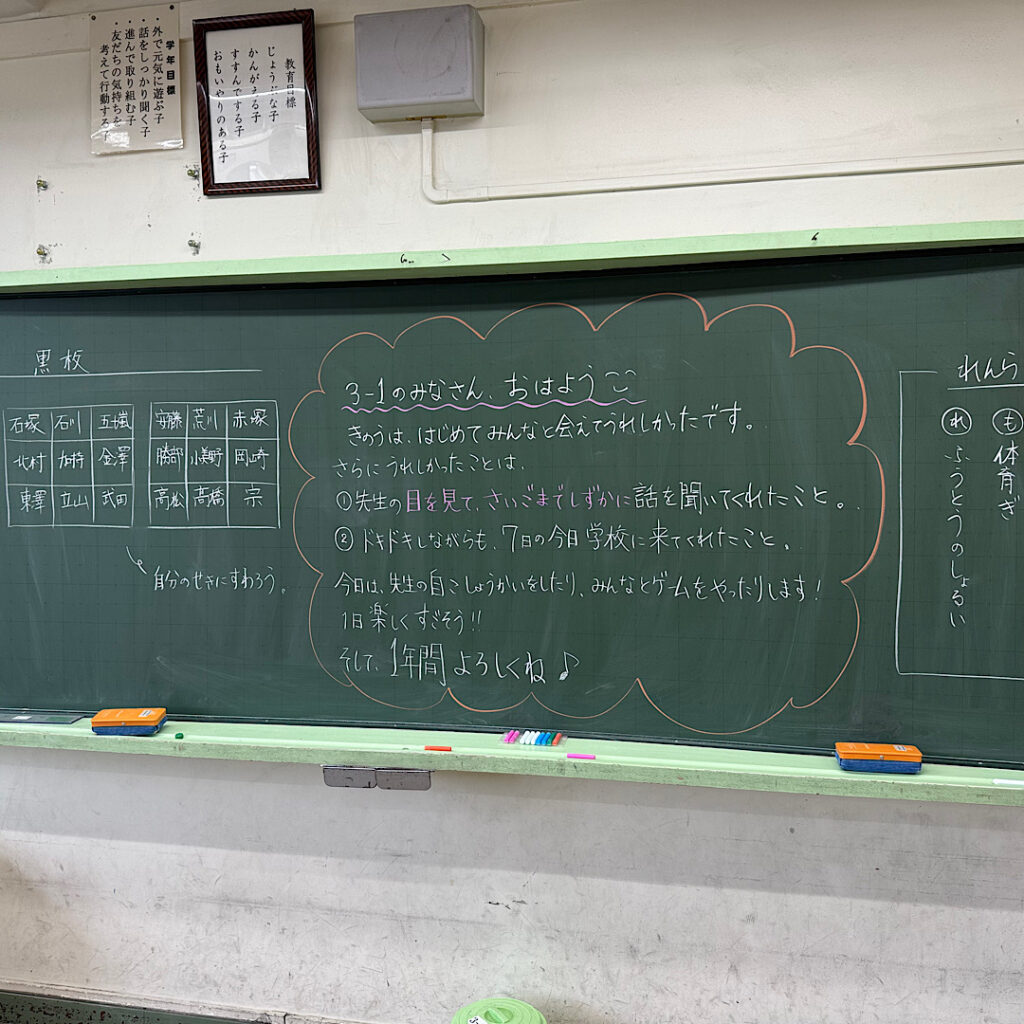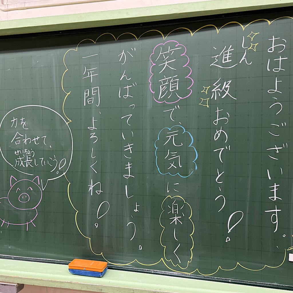 新学期の朝の黒板!