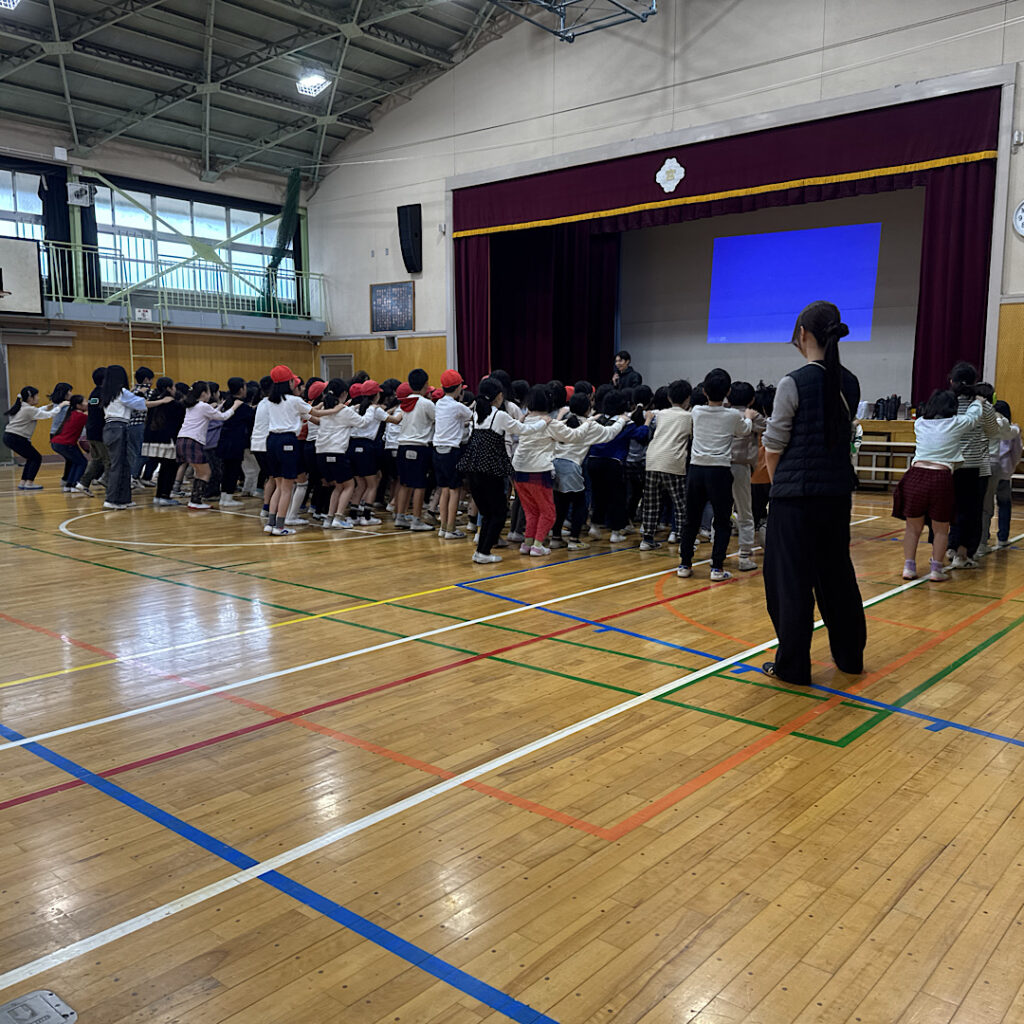 4月10日(金)の一校時、4年生全員とクローバー学級の4年生が体育館に集まって、学年集会が行われていました。この一年間の学年全体の共通確認事項の話が先生方から行われていました。宿題やタブレットの使い方や体力の大切さ等、学校生活のルールを中心に、みんなが気持ちよく学校生活を送れるような大事なお話ばかりでした。こういうことを一年の最初にみんなで共有するのは、とても大切だなと感じました。最後に体ほぐしの運動で和んでいました。