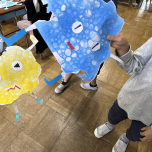 10月10日(金)4校時の1年1組の教室では図工の学習が行われていました。あわぶくモンスターという可愛いモンスターたちがたくさん完成していました。目や口やくつなど形も色もそれぞれ違っていて、子どもたちの自由な発想が見られ […]