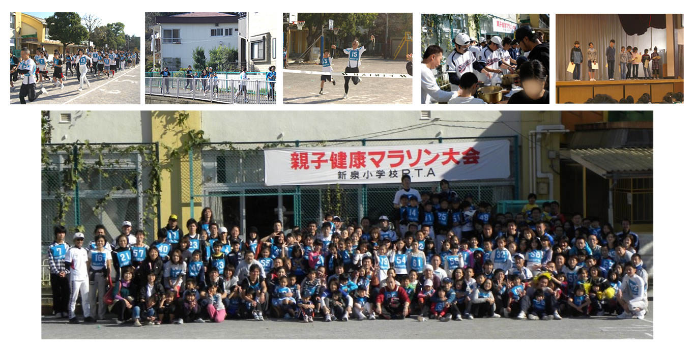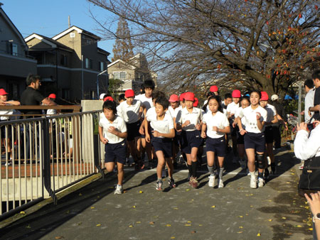 校内マラソン大会の2日後、12月5日(日)には親子健康マラソン大会が開催されました。澄みきった青空と北風のもと97組の親と子(先生と子)が参加し、約2キロの道のりの完走を目指しました。途中で立ち止まりそうになった人もいましたが、沿道の方々の温かい声援に励まされ、全員が完走することができました。