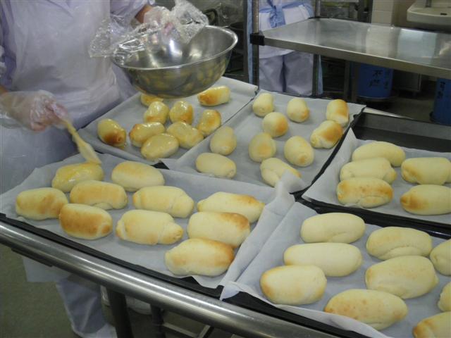 卵で照りをつけ、ふっくらおいしく焼き上がりました☆