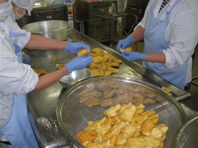 一つ一つ給食室で揚げました。カリッとサクッとおいしく揚がりました。甘ダレと絡みおいしかったです☆
