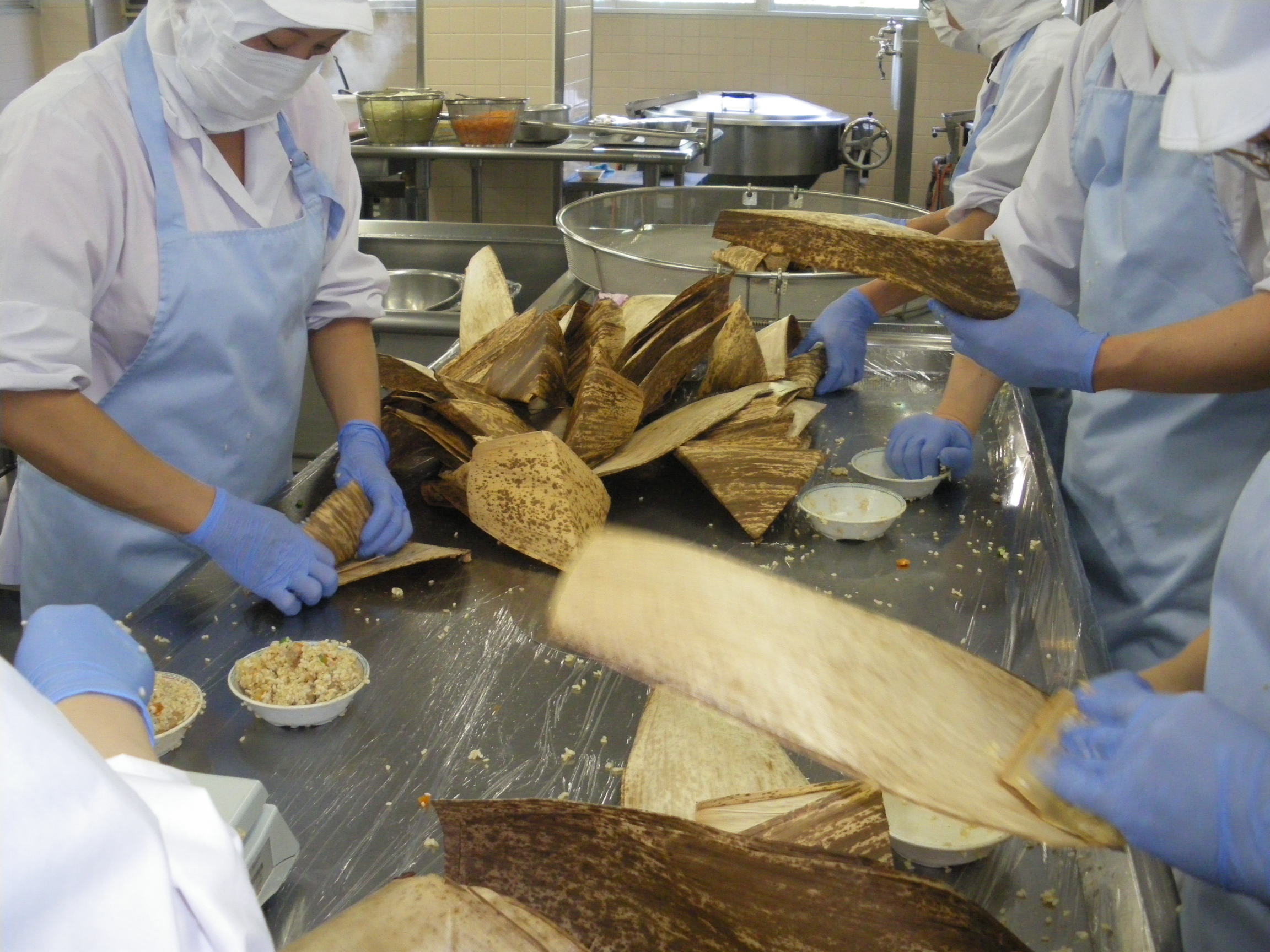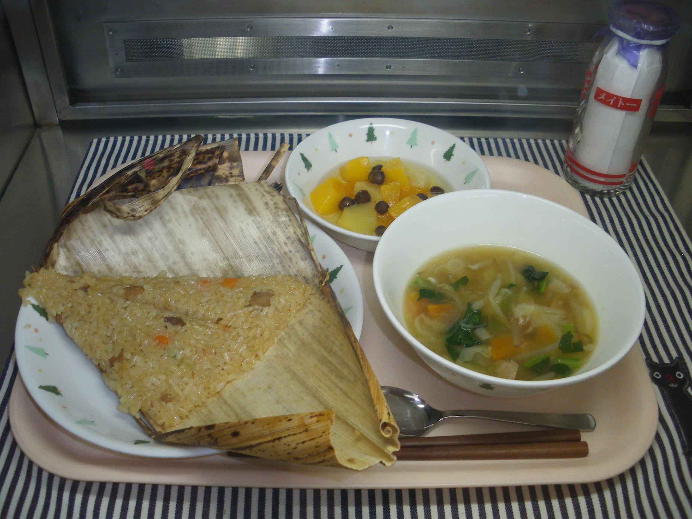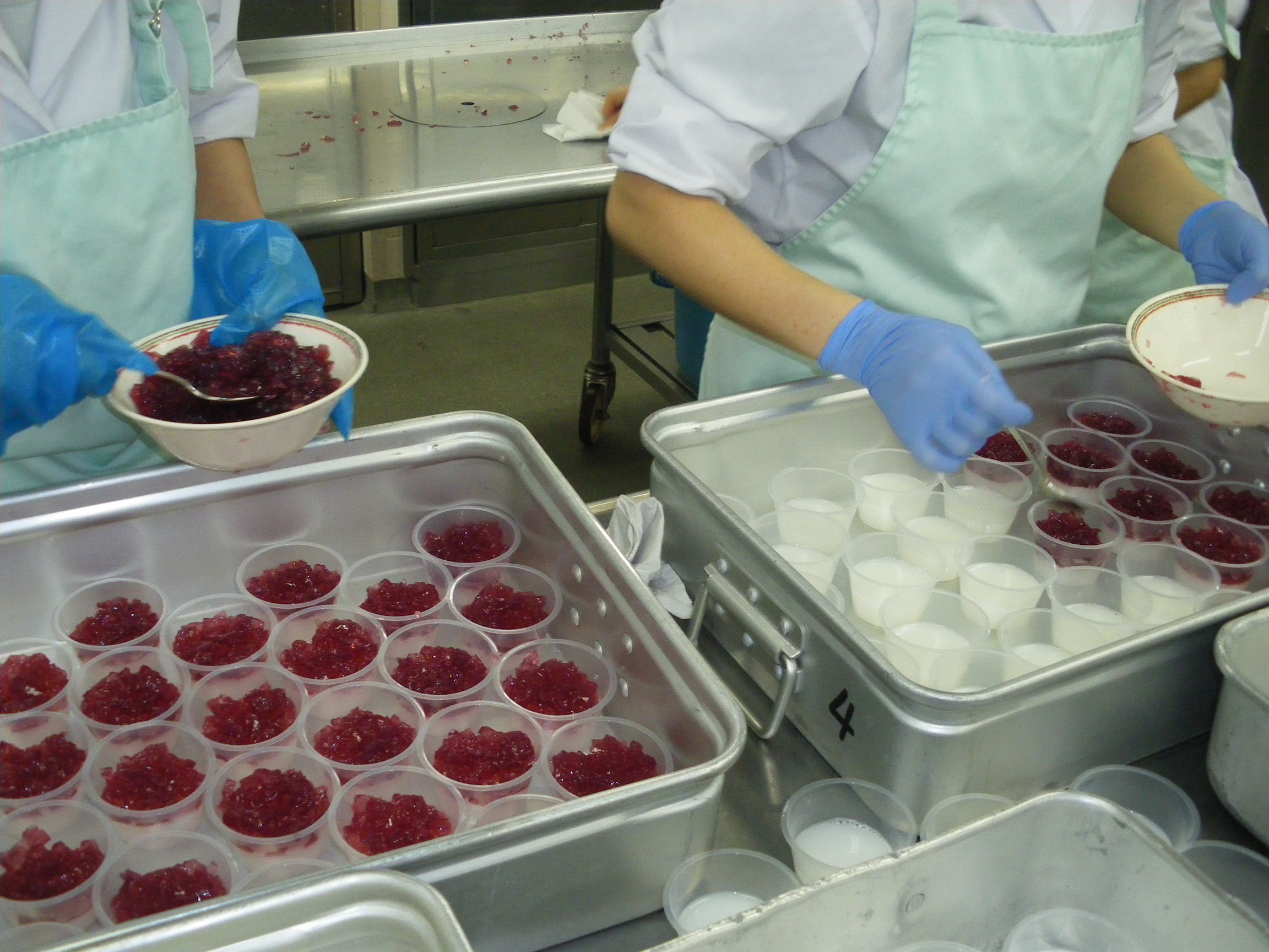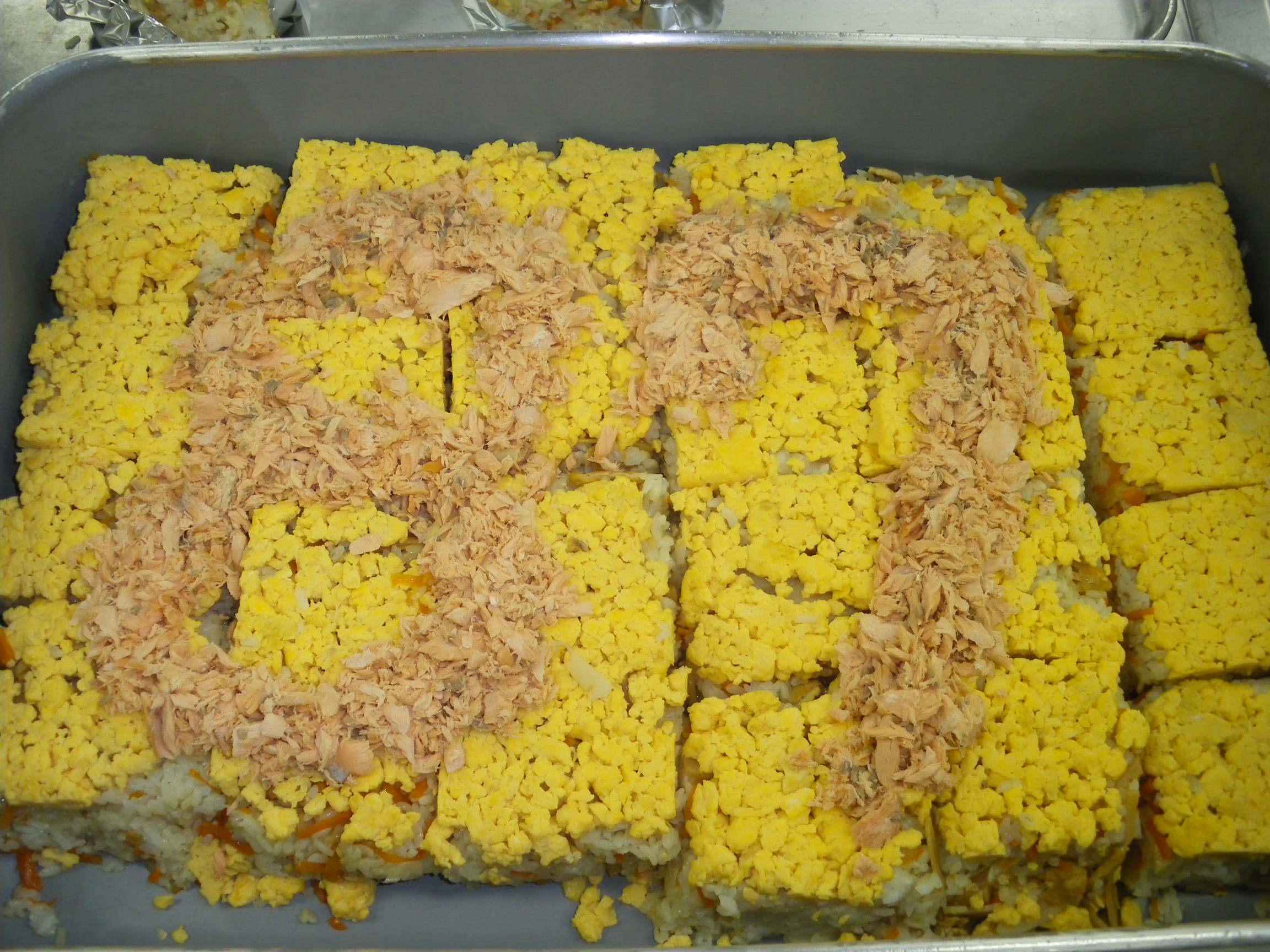 新泉小学校の87回目の誕生日をお祝いして、毎年恒例の押し寿司が登場しました。あじさいゼリーも季節のデザートです。