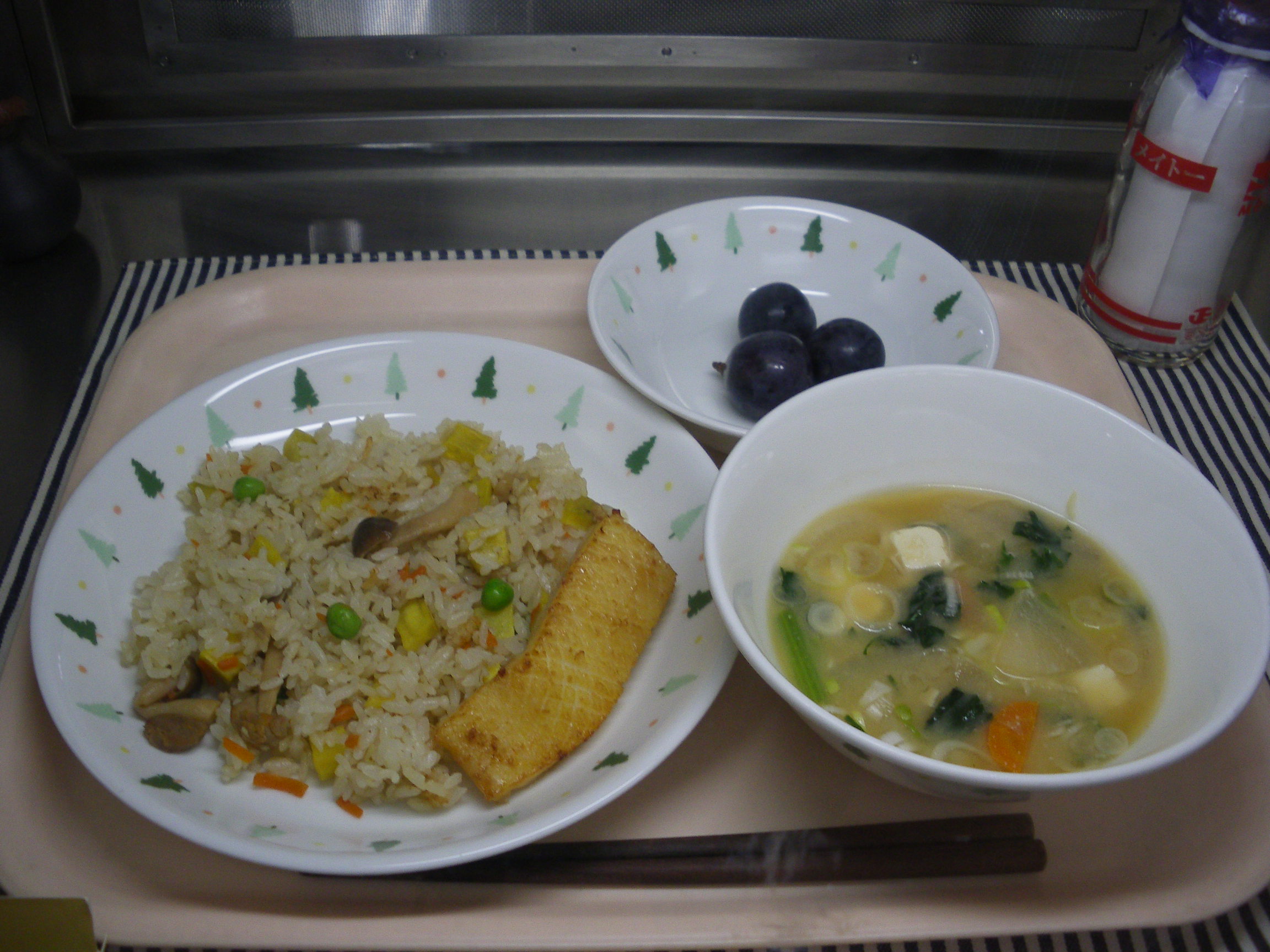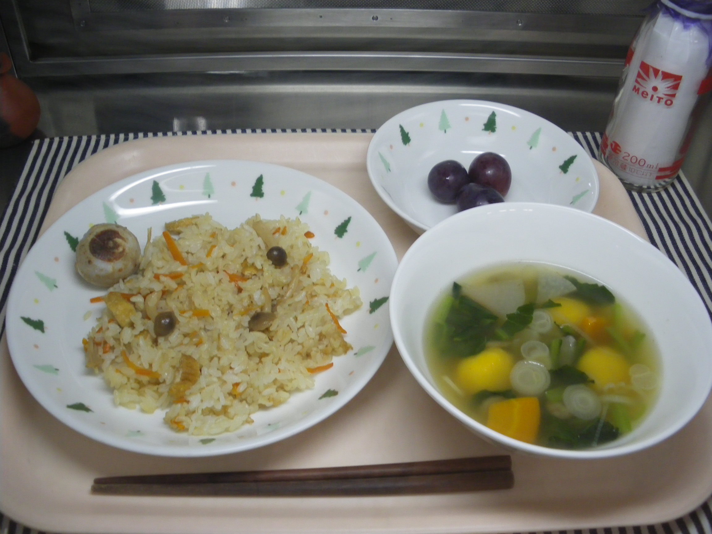 さつま芋やきのこが入った秋を感じる混ぜごはんです。