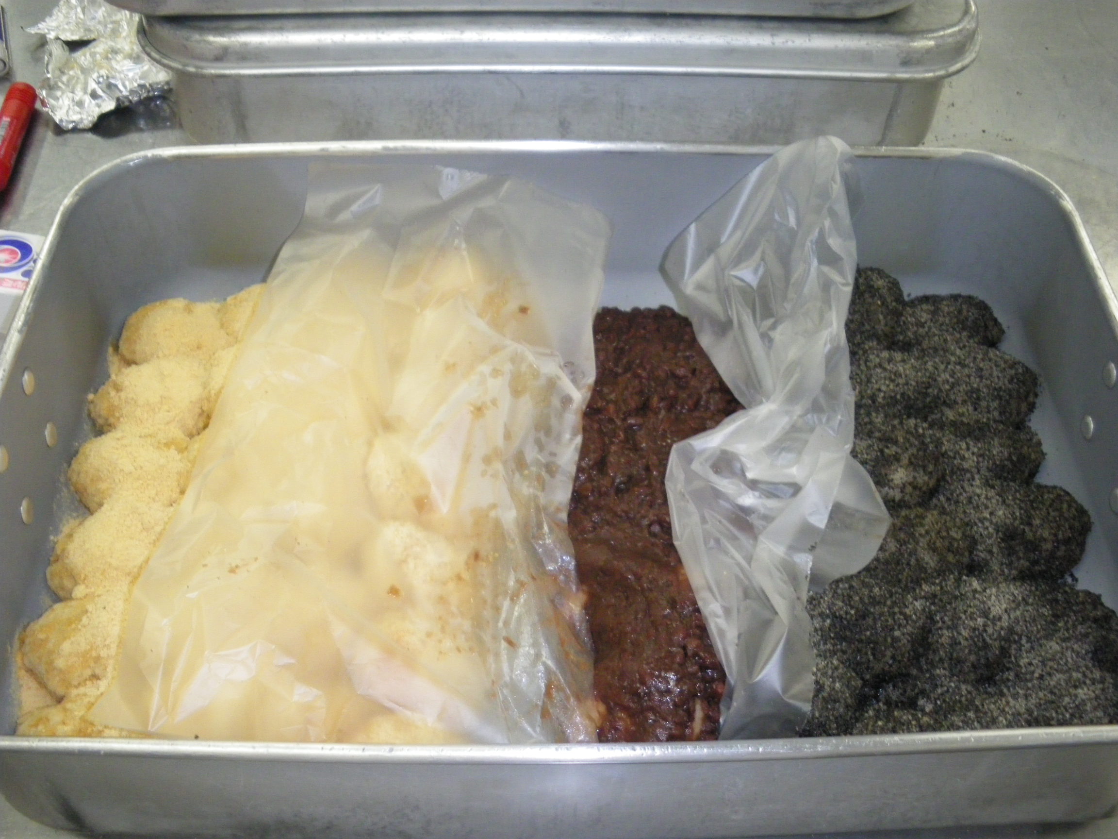 お彼岸の季節になりました。今年も恒例のリザーブ給食を行いました。「あずき、きなこ、ごま」の中から2種類、食べたいおはぎを選びます。一番人気は毎年変わらず、きなこでした。