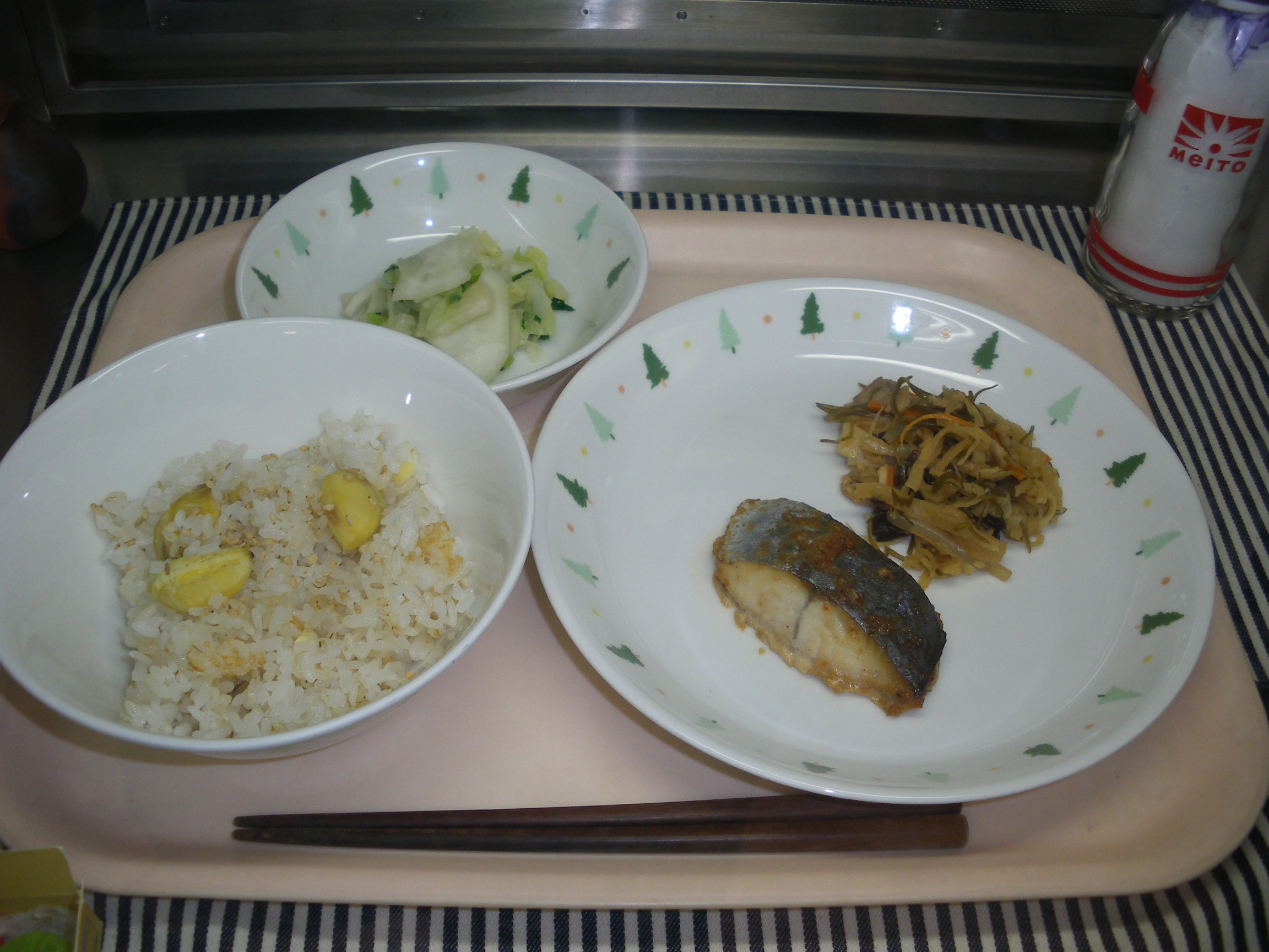 旬の食材の栗をふんだんに使用しました。ほっくり甘く、秋を感じるごはんでした。