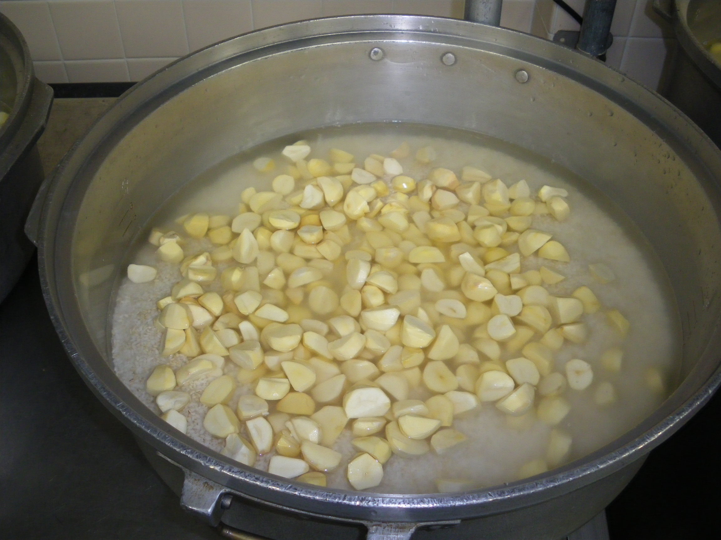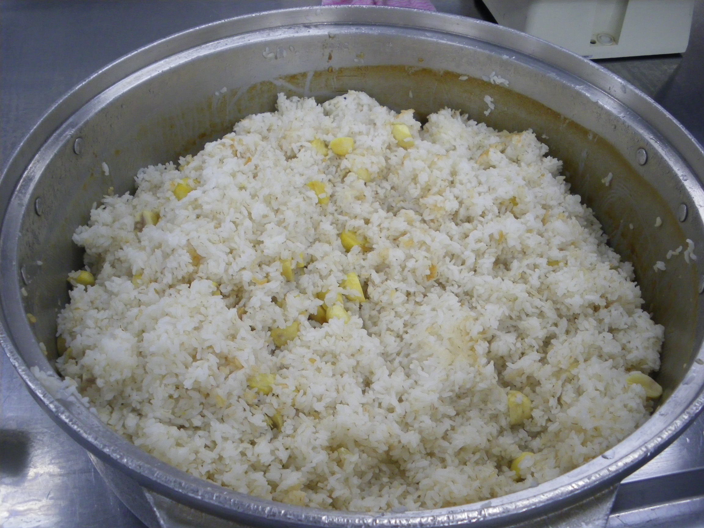 炊きあがったら栗がつぶれないように丁寧に混ぜ、配缶します。