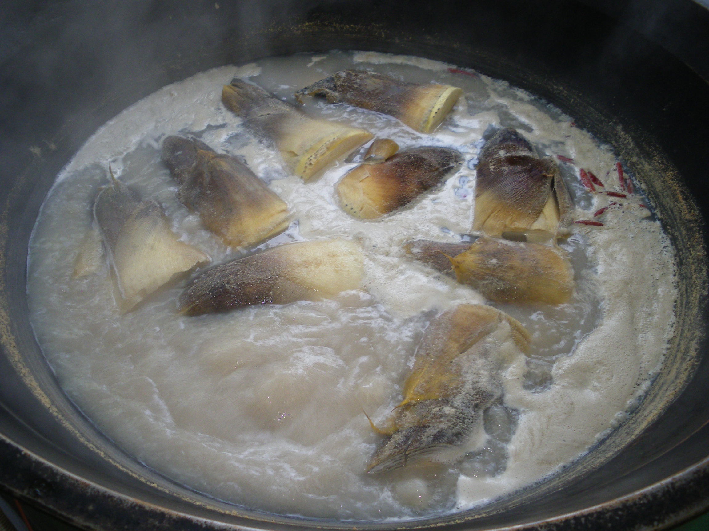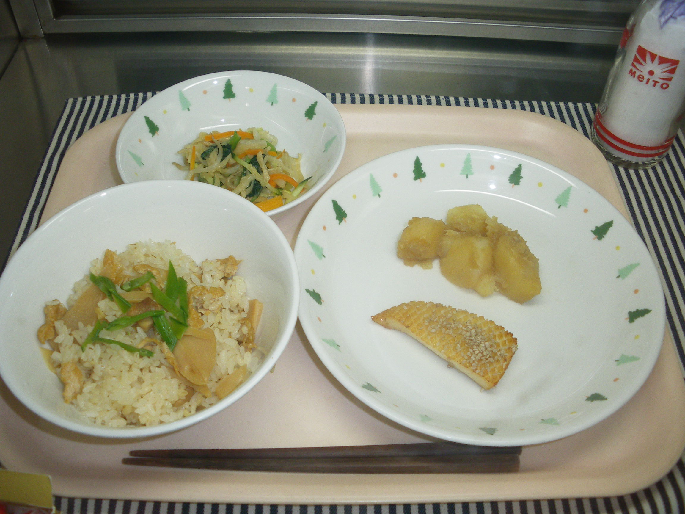 生のたけのこを給食室で下ゆでをしてから使用しました。