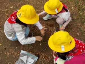 10月31日に生活科見学で神代植物公園へ行きました。今回の生活科見学のめあては、「あきをみつけたり かんじたりしよう!」です。子供たちは、どんぐりや松ぼっくりを拾ったり、秋の物を探すビンゴをしたり、落ち葉を使って遊んだりする中で、様々な秋を見付け、秋らしさを感じていました。小学生になって初めてのバス移動がある行事でしたが、バスでの過ごし方や公共の場所でのマナーについても学習できました。