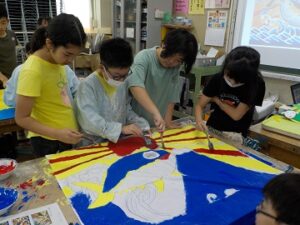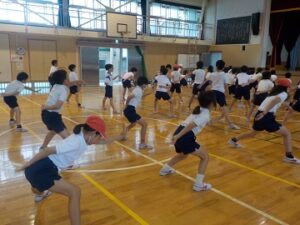 ◆4年 体育学習発表会に向けて 2023.09.26 9月30日の体育学習発表会に向けて、4年生は「ソーラン節」を通して自分たちの思いを表現することに取り組んでいます。学年の中から数名の実行委員を募り、学年目標や学習の方法、発表の仕方などを話し合いました。こういう練習はどうだろう、こんな隊形はどうだろうといったことを子供たちが意見を出し合い、発表に向けて熱心に取り組んでいます。本番をお楽しみに!