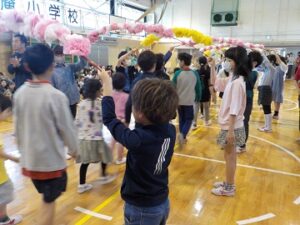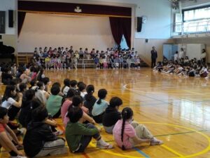一年生は入学してから1週間。学校に慣れることはもちろん、呼びかけや合唱の練習にも力を入れてきました。「さんぽ」の元気な歌声はよくそろい、笑顔が光っていました。