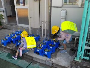 アサガオだいすき 1年生 2023.05.26 ドキドキの入学式から、もうすぐ2か月。この4月に松庵小の仲間入りをした1年生も、すっかり学校生活に慣れ、毎日楽しく過ごしています。そんな1年生が今夢中になっているのが、アサガオです。あんこ応援団のサポートを受けながら一生懸命に種を植え、毎日水やりをしています。芽が出たときには、先生たちに嬉しそうに伝えていました。日々大きくなっていくアサガオの生長を楽しみながらお世話をしています。