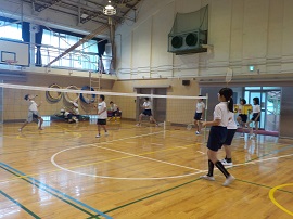 今年度からできたクラブです!試合をしたりミニゲームをしたり、自分たちで活動内容を考え、学年を問わず楽しくバドミントンをしています。