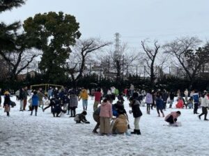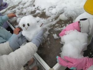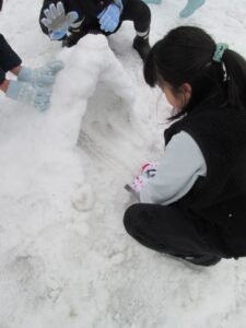 全学年 「雪だ!!!」 2024.02.08 2024.02.07 6日午後から降り積もった雪で校庭は真っ白になりました。めったにない雪景色に、1時間めは全校で雪遊びを実施しました。大小さまざまな雪だるまや雪像は、全部でいくつできたでしょう。 大きくなり過ぎただるまの頭を下級生では持ち上げられず、お兄さんたちが一所懸命に上げてくれる姿、1年生の雪玉があたるようにスピードを落として逃げてあげる姿など、来月には卒業していく6年生の優しさもたくさん見えたひとときでした。
