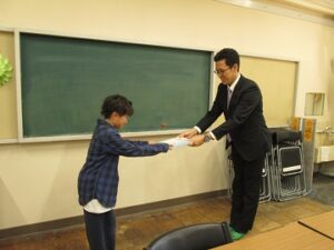 離任式「お世話になりました」 2023.05.11 5月2日(火)に松庵小から異動された先生をお招きして、「離任式」を行いました。離任された先生方には各学年から感謝の気持ちを込めたお手紙をお渡ししました。オンラインでの式となりましたが、式後には離任された先生方が各教室をまわって下さり、直接感謝の気持ちを伝えることができました。久しぶりの再会に涙ぐむ児童もいて、多くの先生方との関わりが児童の成長の糧となっていることを感じました。