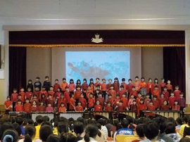 4年生は「ごんぎつね」を歌とリコーダーの演奏で表現した後、国語科で学習した内容を踏まえ、登場人物たちを思って歌詞を作り歌いました。そろいの法被できめた合奏「ソーラン節」では、迫力ある歌と合奏を響かせました。
