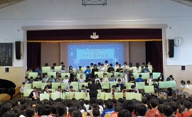 2年生は音楽劇「スイミー」を上演し、言葉と音楽で物語を客席に一所懸命伝えたあと「手のひらを太陽に」を楽しそうに合奏しました。