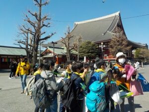4年 社会科見学 2023.03.06 2月28日(月)に社会科見学に行ってきました。場所はそなエリア東京と浅草です。そなエリア東京では、大きな地震が起きた時にどうすればいいかについて学習しました。一人一台のタブレットをもって、外出先で地震が起きたら?家にいるときに地震が起きたら?どのような行動をとればいいのかクイズに答えながら学習しました。 浅草では、ガイドの方の説明をよく聞いて、浅草の歴史や文化について学習しました。真剣なまなざしに成長を感じました。 とても暖かく晴天に恵まれ、バスの中からも東京観光を楽しむことができました。
