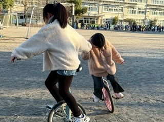 2学期は行事の多い学期です。朝遊びを少しふりかえってみます...夏休みが終わると、10月の運動会に向けて、一輪車を披露する学年もあり、毎回沢山の子どもたちが練習に来てくれました!運動会が終わった後も一輪車は高学年に人気です!1年生は12月に昔遊びの授業があり、竹馬を教えてもらう機会がありました。朝遊びの時間も、竹馬をやりに来てくれています。(余談ですが、竹馬はいつの間にか昔遊びになっていたのですね…)最初は人や壁を支えにしなくては足置きに乗れない子が、一人で一瞬でも足を置ける..