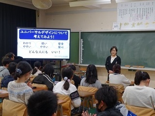 5年生は総合的な学習で「誰もが暮らしやすい町づくり」と題し、これまで高齢者や障がいのある方など色々な立場の方々について、体験的に学んできました。3学期はユニバーサルデザインについて学習を進めています。今回は井上尚子先生をお招きし、お話を伺いました。私たちは同じ絵を見ても、捉え方によっては別のものを見て取ったり、同じ言葉を聞いても別のことを想像している場合があります。人はみんな違います。困っている事もそれぞれです。障がいのあるなし、年齢、性別、国籍に関係なく、誰にとっても安全、..
