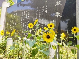 7月1日(土)雨が降る中、ご寄付頂いた25株のひまわり「サンフィニティ」を植付けました。多花性で小ぶりな花が次々と咲きます。背丈も1メートルくらいと通常のひまわりに比べると小さめです。正門側プランター、正門玄関付近花壇そして歌碑前で咲いています。東門側プランターにも6月に子どもたちと植えた花たちが元気に咲いています!7月18日(火)に予定していた活動は、高温のため急遽中止いたしました。次回は夏休み期間の水やりを挟んで9月26日(火)の予定です。今学期も花ボラ活動にご理解ご協力..