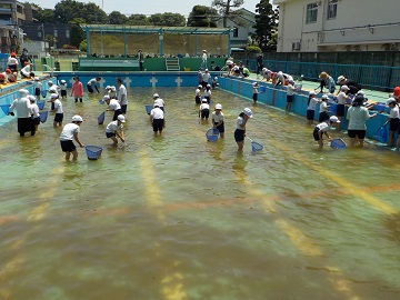 3年 ヤゴ救出大作戦 杉並環境ネットワークの方々をお招きし、学校のプールの中にはヤゴ(トンボの赤ちゃ...