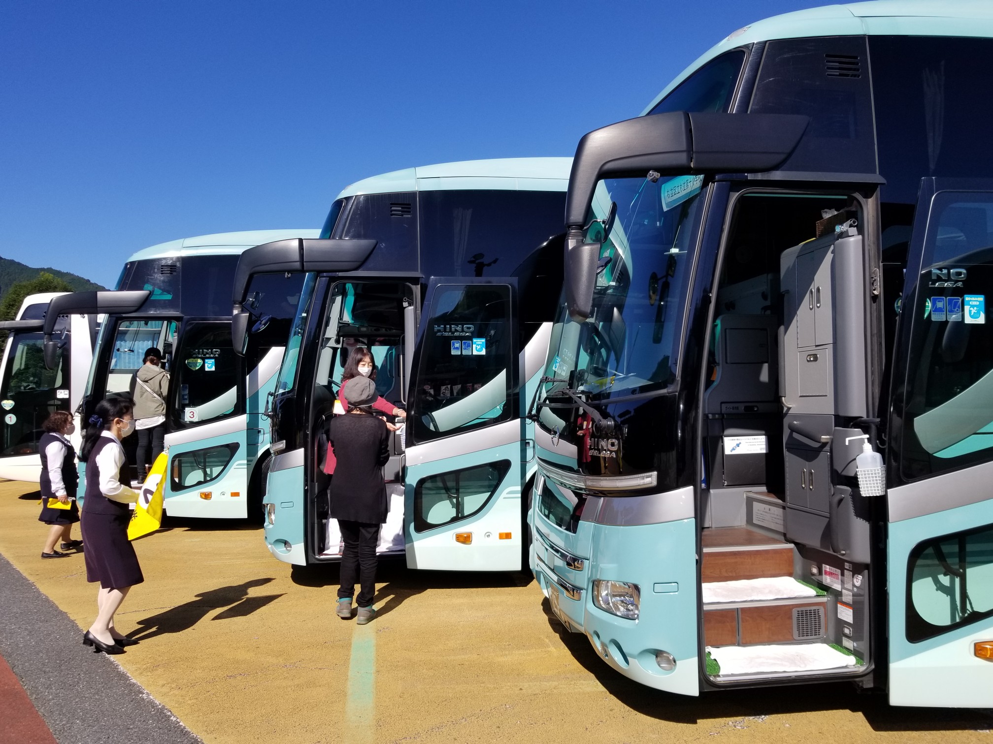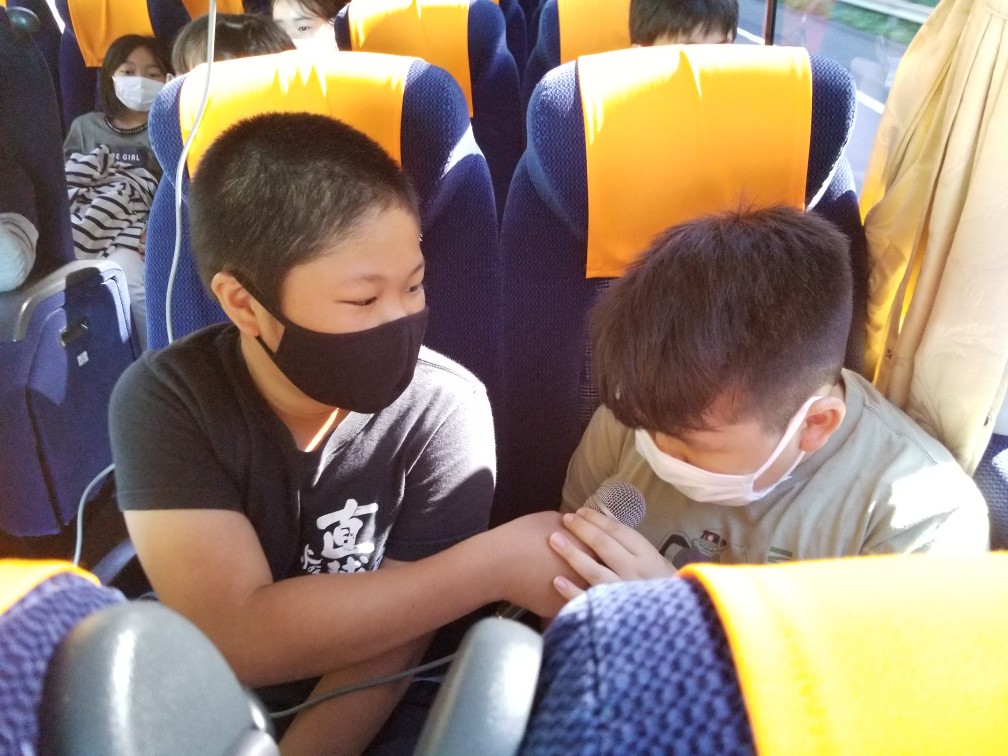 8時30分、バスは蚕糸の森公園前を出発しました。 保護者の皆様、今日までの健康管理や準備、お見送り等、ありがとうございました。子どもたちの様子をアップしていきますので、ご覧くださいね。