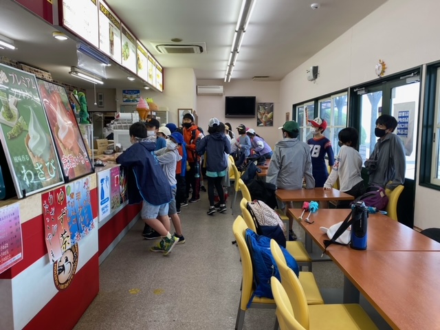 夕食までの時間は、おやつの牛乳、お風呂、お土産の時間です。何を買おうかと、あちこち見て回ったり、計算しながら買える物を考えたりしていました。お家の人からのリクエストがある人もいました。