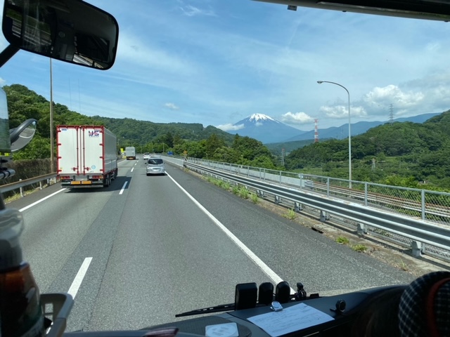 天気がいいので、バスの中から富士山が綺麗に見えます。