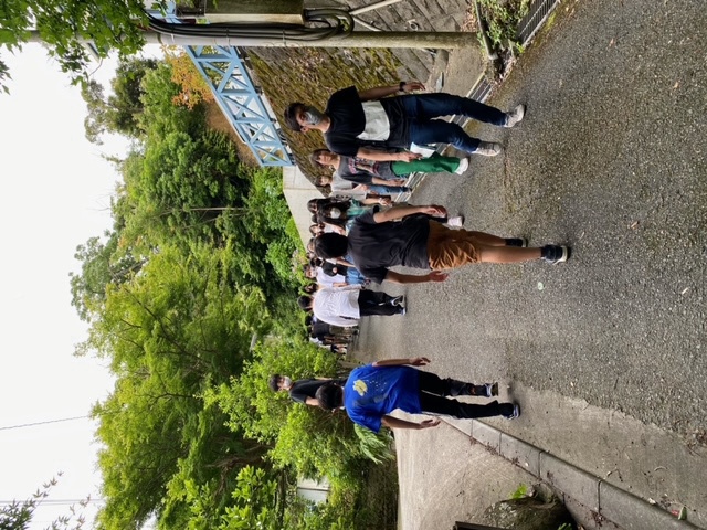 部屋に荷物を置いた後は、高台に逃げるための避難訓練です。結構急な坂道でした。