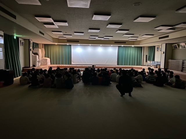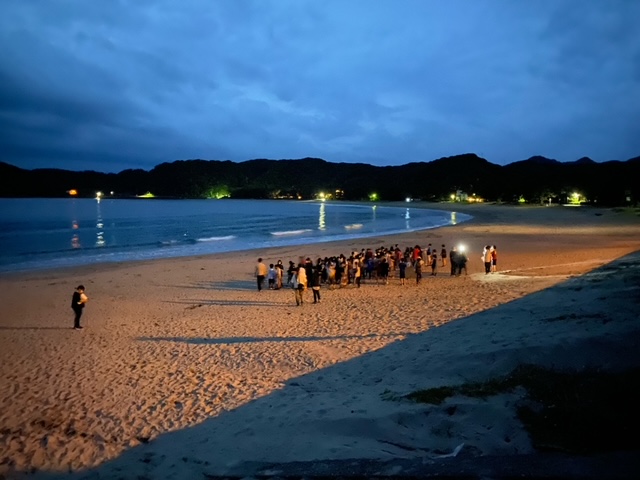 残念ながら、夜の星空観察は、曇っていて、月さえ見えませんでした。ただ室内レクではなく、浜辺で波の音を聞きました。ここで、タイムスケジュールが元に戻りました。