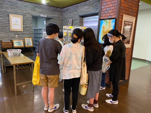 2日目の午前中の予定は、磯観察でした。館内で、まず、エコサーファーとして活動している堀さん(キャプテン)から、磯観察のポイントや見られる生き物などについて話を伺いました。