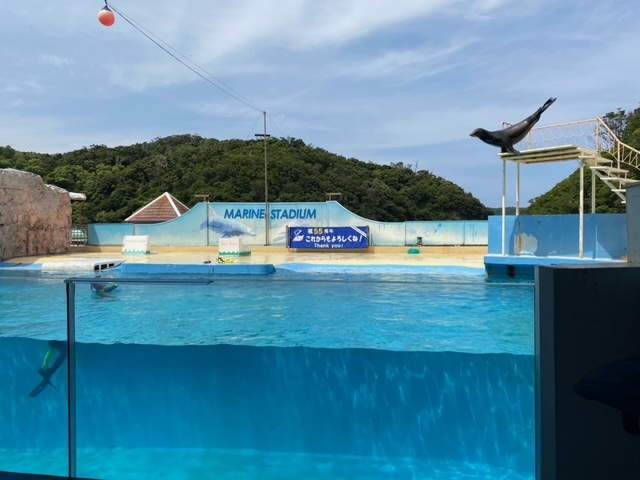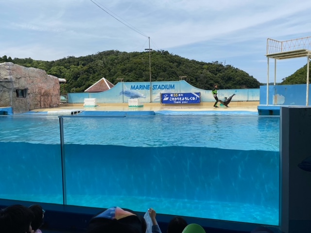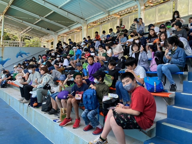 下田海中水族館で昼食を取った後、館内の見学をしてから、ショーを見ました。アザラシ、アシカ、イルカが、様々なパフォーマンスを見せてくれました。みんな、大きな拍手を送っていました。