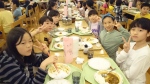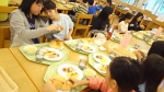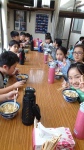 自分たちで作ったほうとうをいただきました。かぼちゃ、きのこ、白菜等、旬の 野菜もたっぷりで、とてもおいしかったです。おかわりする人もたくさんいました。