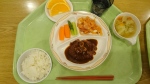 メニューはハンバーグ、ナポリタン、にんじん、アスパラガス、野菜スープ、ごはん。今夜も食欲旺盛です。