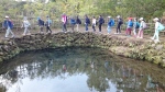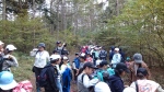 登山の前に忍野八海の見学です。透き通った湧水に驚いています。