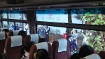 トイレ休憩を済ませました。皆、元気です。1号車では、ガイドさんから「談合」って何かを教えていただきました。「団子」じゃないんですよ。