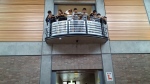 山歩きの後の牛乳は格別です。あちこちから「おいしい〜!」という声が聞こえてきました。腰に手を当てて飲むと最高ですよ。