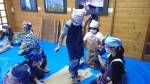 2日目の夜は、館内きもだめし。こわ〜い話を聞いた後、4人一組で、こわ〜い音響が流れる真っ暗な館内を、2階から1階まで歩きます。大人スタッフ総出ですから、写真を撮る余裕はありませんでした。肝は試されたでしょうか。