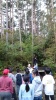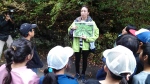 森でのフィールドワーク。溶岩の上に生えたアカマツの森で植物や動物について学びました。